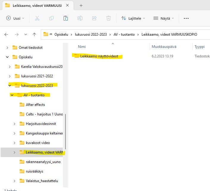 Varmuuskopionti: Siirsin videotiedostot muistikortilta ulkoiselle kovalevylle, ja ennen kuin aloitin editoinnin, tein varmuuskopion kaikista videoklipeistä toiselle ulkoiselle kovalevylle. Tallennan myös editoituja videoita kahteen paikkaan. Tallennan myös keskeneräistä projektia sekä koneelle että ulkoiselle kovalevylle. Premieren asetuksissa on myös automaattinen tallennus päällä muutaman minuutin välein kaiken varalta.