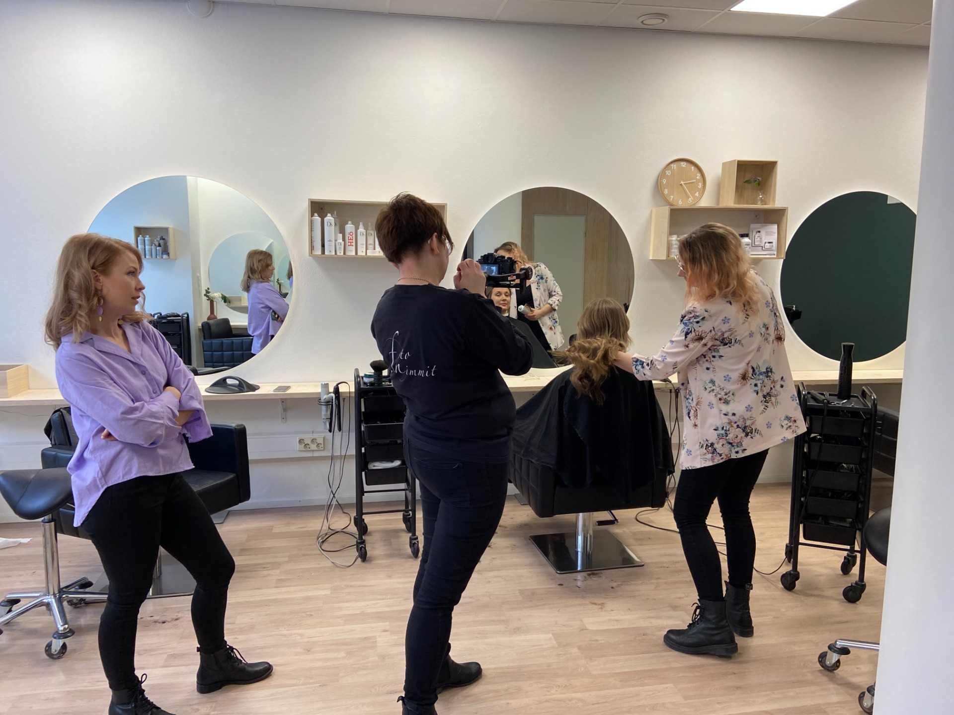 Työryhmä: Minä, Laura, kampaamon omistajat Henna ja Sini (Yhteydenpito pääsääntöisesti Hennan kanssa). Lauran kanssa suunniteltiin videon kuvakulmia, sekä pohdittiin valaisua ja muita yksityiskohtia.